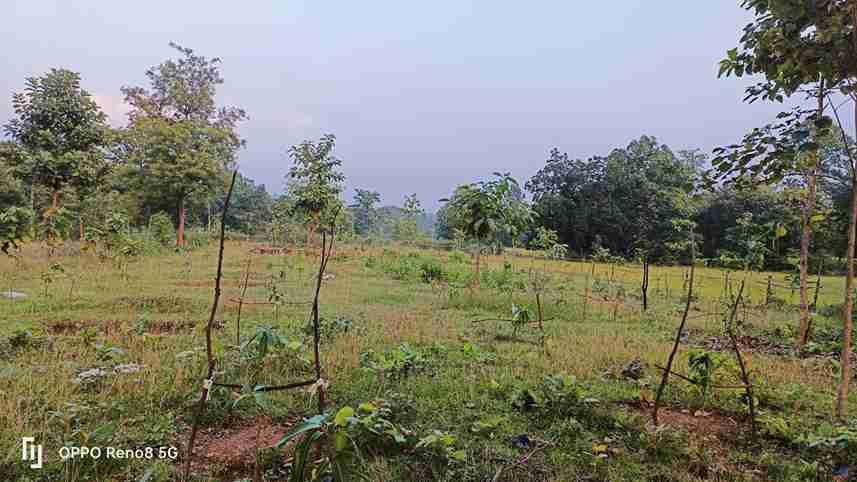 Encirclement:Encirclement by planting local plants and bushes like Putush, Sindwar, bamboo etc. is made around the edges of the selected land.